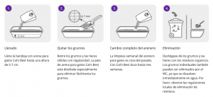 Puede permanecer en la caja de arena hasta 3 semanas antes de que sea necesario un cambio completo.
