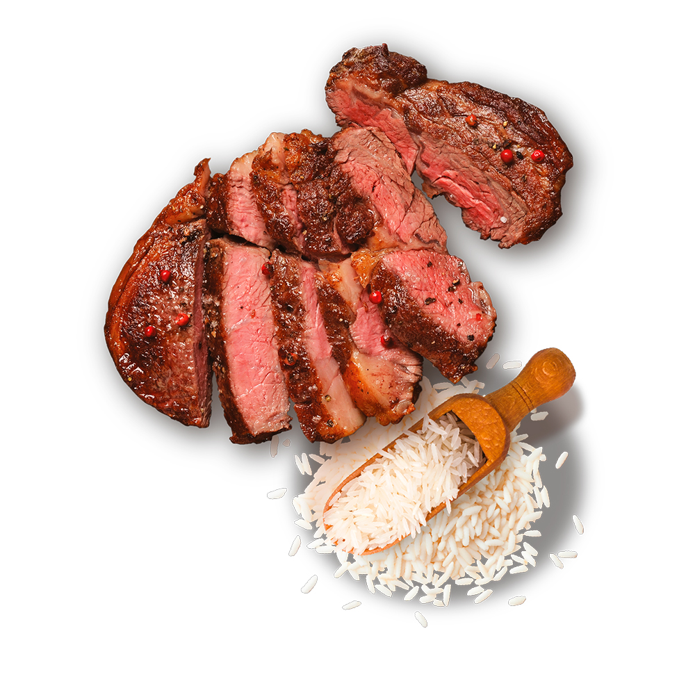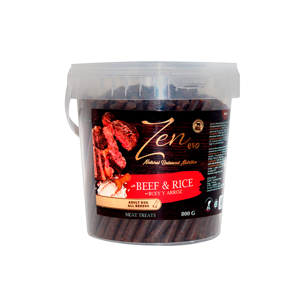 Carne fresca (65%), arroz (27%), hígado de pollo, pollo deshidratado, buey fresco, cloruro sódico.